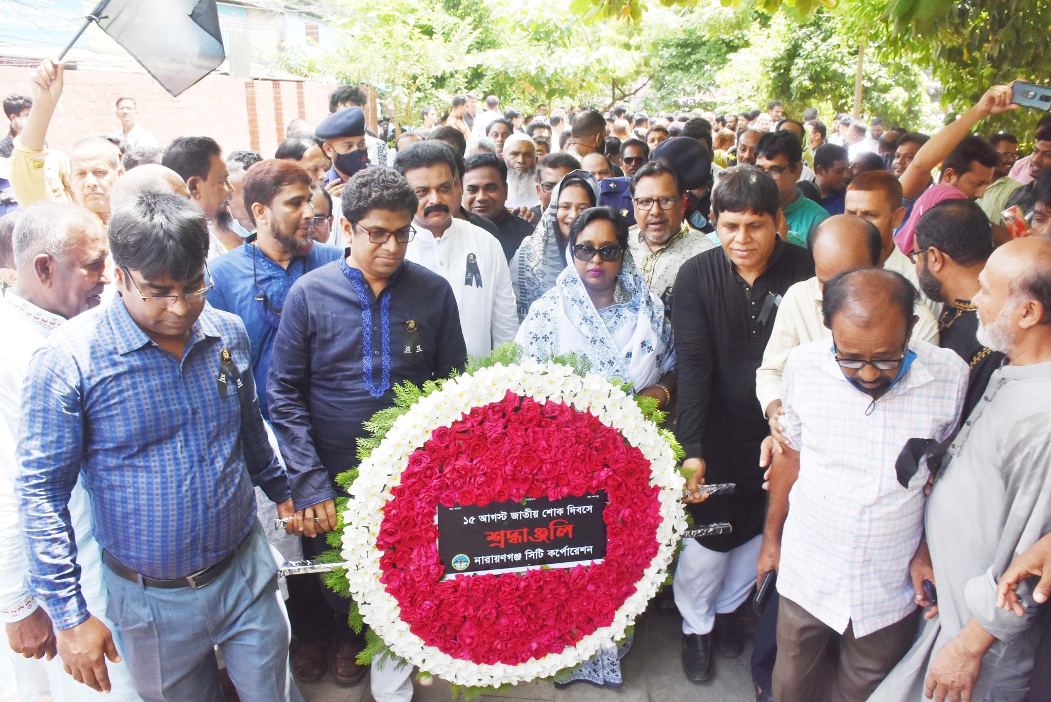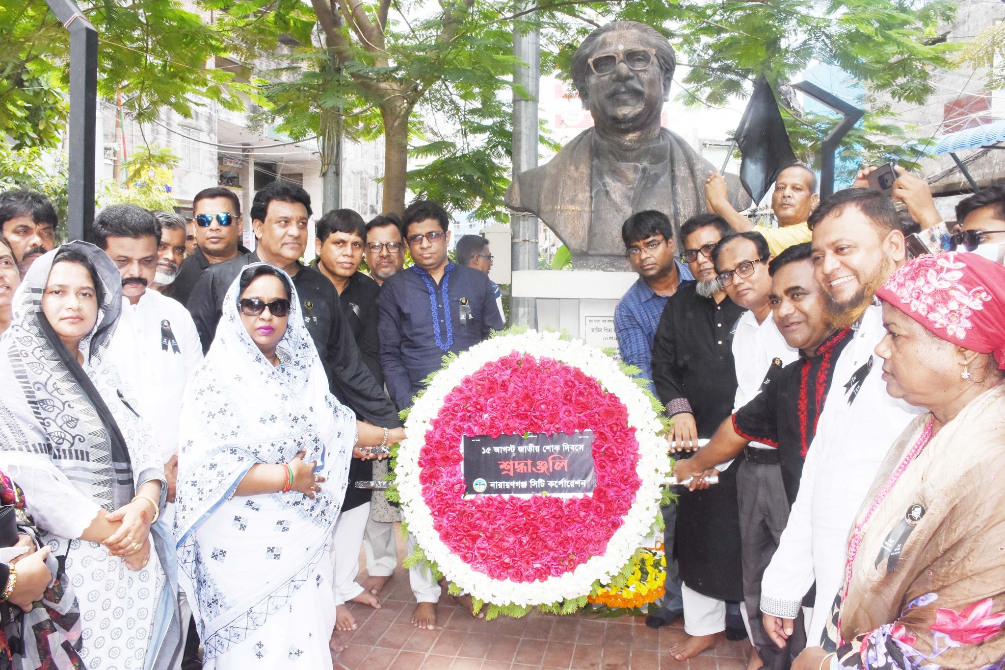 জাতির পিতা বঙ্গবন্ধু শেখ মুজিবুর রহমান এর ৪৭তম মৃত্যু বার্ষিকী ও জাতীয় শোক দিবস উপলক্ষে নারায়ণগঞ্জ সিটি কর্পোরেশনের মাননীয় মেয়র ডা. সেলিনা হায়াৎ আইভী’র ২নং রেল গেইট সংলগ্ন জাতির পিতার প্রতিকৃতিতে পুষ্পস্তবক অর্পণের মাধ্যমে শ্রদ্ধাঞ্জলী।