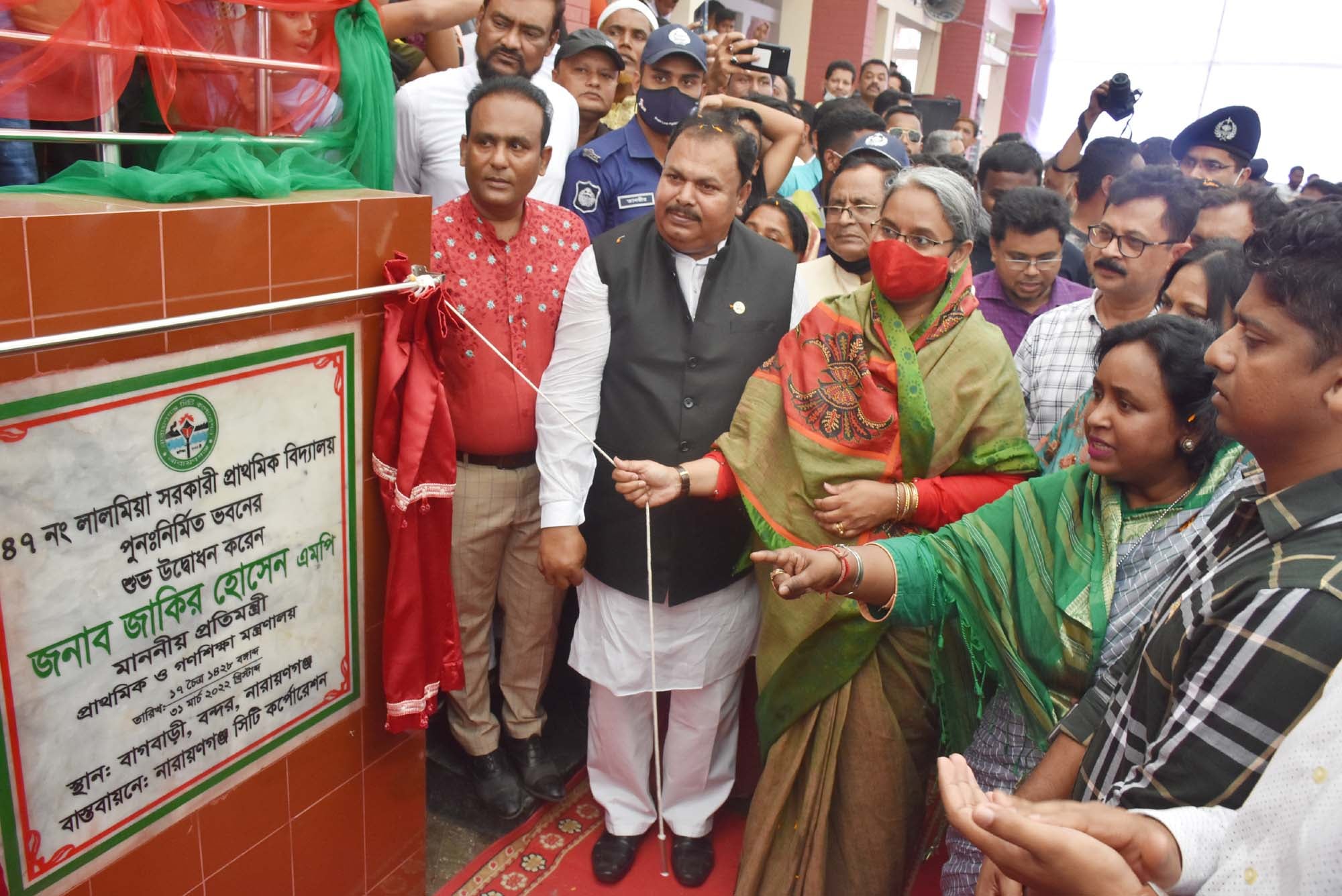 নারায়ণগঞ্জ সিটি কর্পোরেশন কর্তৃক পুনঃনির্মিত ৪৭নং লালমিয়া সরকারি প্রাথমিক বিদ্যালয় ভবনের শুভ উদ্বোধন করেন জনাব মোঃ জাকির হোসেন এমপি, মাননীয় প্রতিমন্ত্রী, প্রাথমিক ও গণশিক্ষা মন্ত্রণালয়, গণপ্রজাতন্ত্রী বাংলাদেশ সরকার।