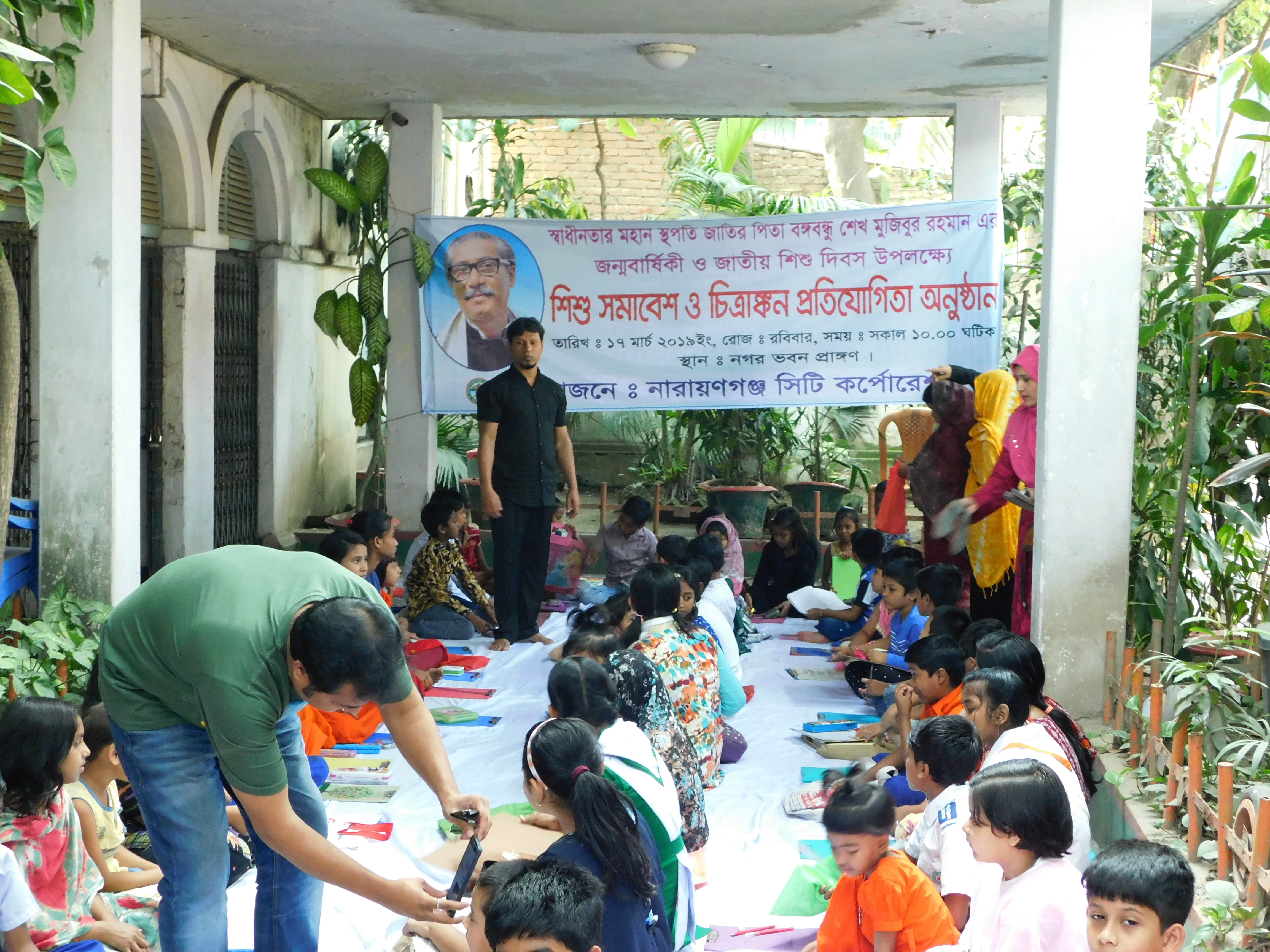 স্বাধীনতার মহান স্থপতি জাতির পিতা বঙ্গবন্ধু শেখ মুজিবুর রহমান এর ৯৯তম জন্মবার্ষিকী ও জাতীয় শিশু দিবস-২০১৯ উপলক্ষ্যে নগর ভবন প্রাঙ্গণে “শিশু সমাবেশ ও চিত্রাঙ্কন প্রতিযোগিতা” অনুষ্ঠিত হয়। (১৭ মার্চ ২০১৯)