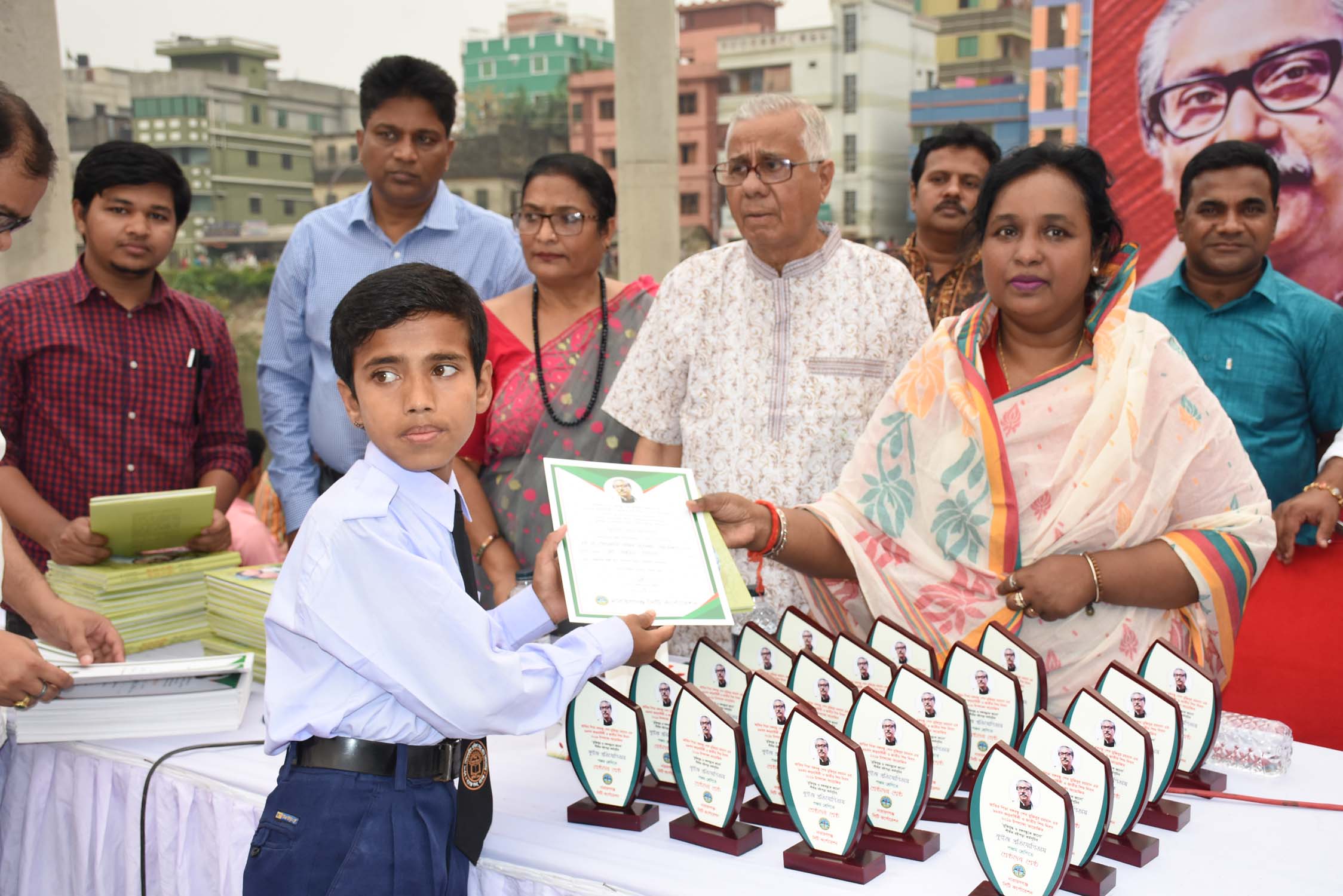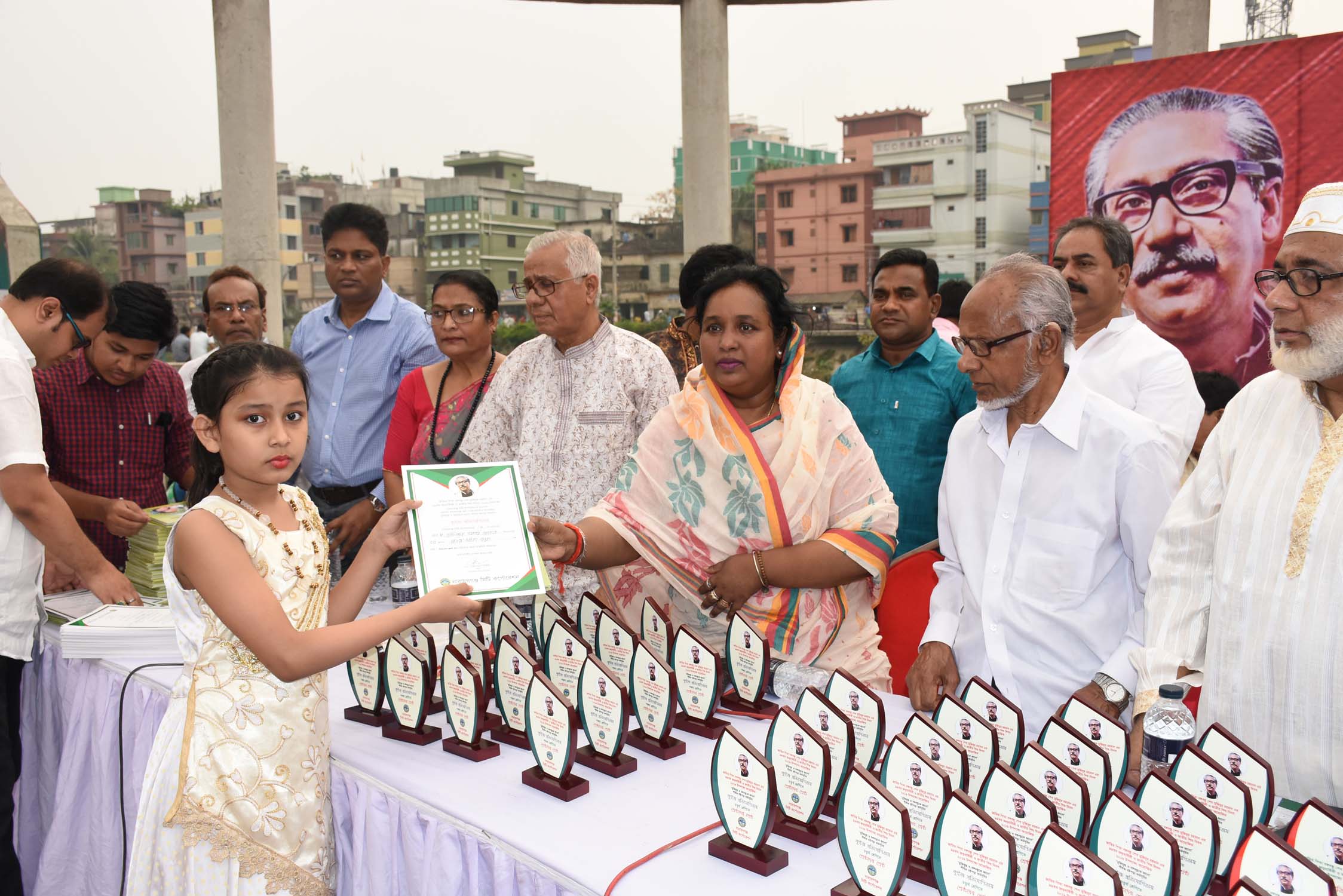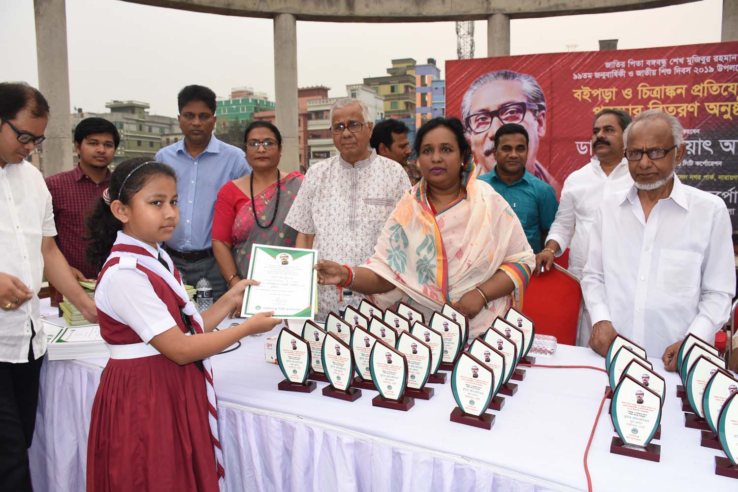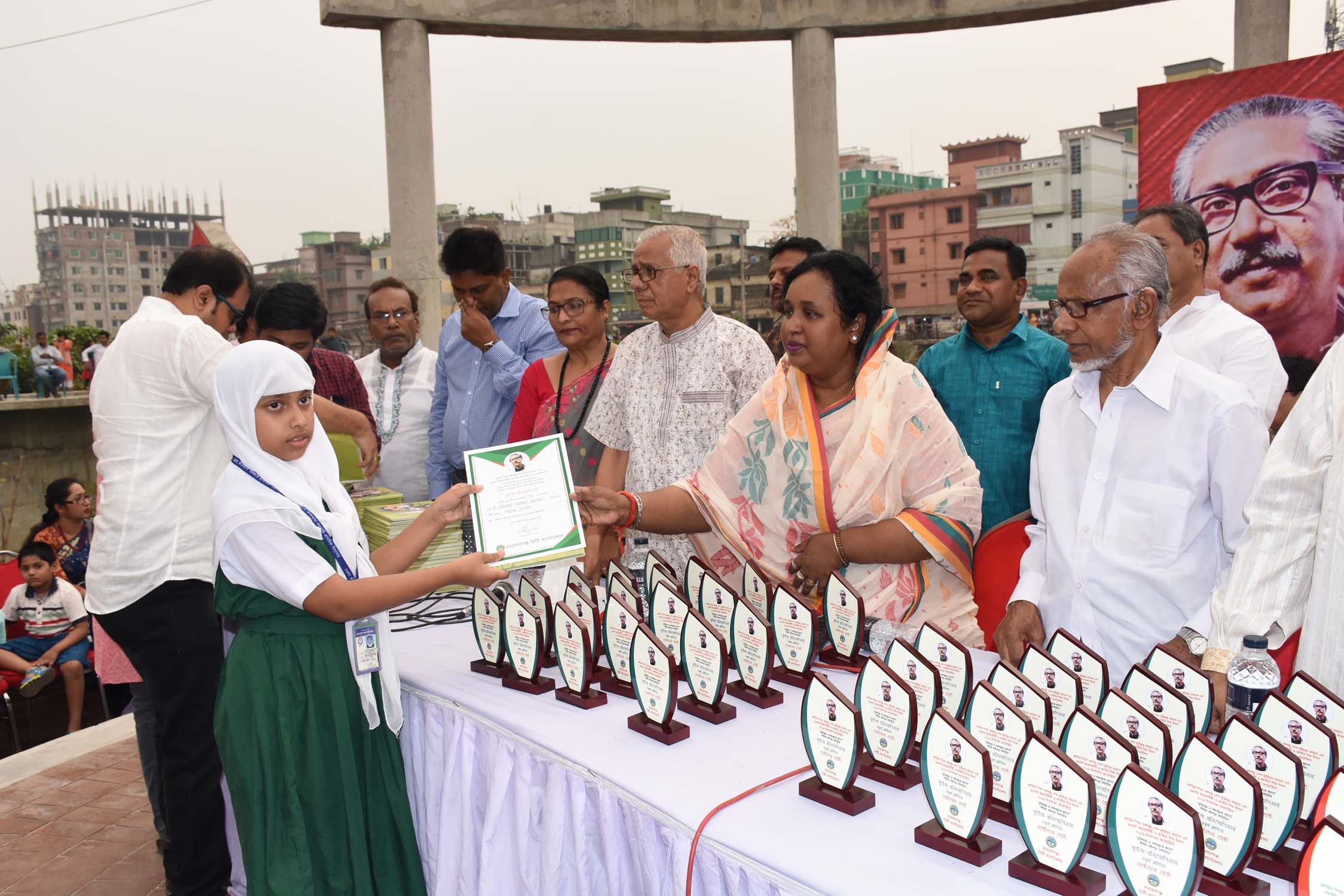 স্বাধীনতার মহান স্থপতি জাতির পিতা বঙ্গবন্ধু শেখ মুজিবুর রহমান এর ৯৯তম জন্মবার্ষিকী ও জাতীয় শিশু দিবস-২০১৯ উপলক্ষ্যে আয়োজিত “মুক্তিযুদ্ধ ও বঙ্গবন্ধুকে জানো শীর্ষক বইপড়া, কুইজ ও চিত্রাঙ্কন প্রতিযোগিতার” পুরস্কার বিতরণ অনুষ্ঠান। (১৭ মার্চ ২০১৯)